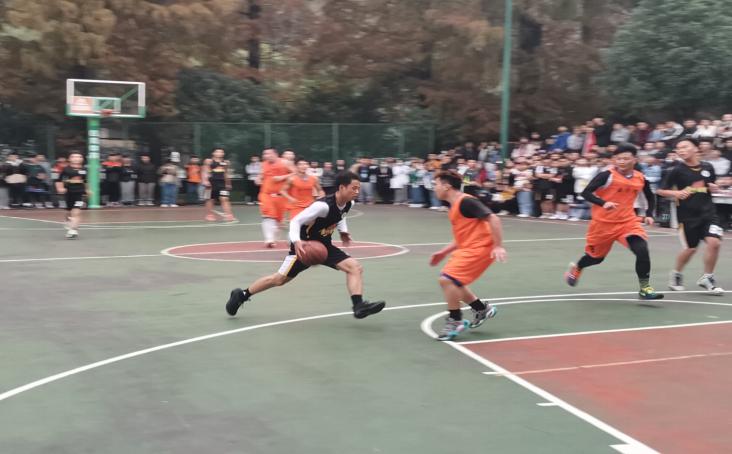 11月的天气寒意阵阵,但依然挡不住S4篮球场似火的热情。随着公司老师、同学们愈渐洪亮的加油声,队员的士气不断高涨。开球,公司率先砍下5分,短暂的攻防角逐后,比分来到15:5,10分的分差,公司将比赛带到白热化。之后胡楠以两记三分球将比分再次拉开,在队友们出色的配合下,以30:18结束上半场比赛。
