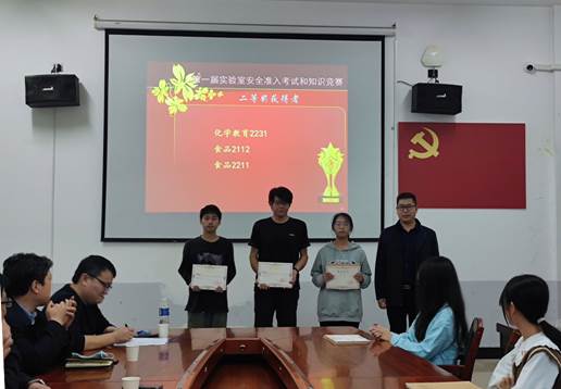 10月20日下午,公司举行仪式,对上述获奖的员工进行了现场颁奖。执行经理余海忠在点评时指出,实验室安全是重中之重的工作,与公司师生能否顺利开展科学研究、实验教学、创新训练息息相关,以竞赛形式让同学们进一步了解、学习实验室安全注意事项是一种喜闻乐见的形式,公司将会持定期、续开展类似活动,让同学们在参与的过程中学习更多的实验室安全知识,提高实验室安全意识。党委书记杨豪良则强调,实验室安全隐患很多时候都隐藏在我们实验中极易忽视的小细节,为了能更好的开展实验教学和科研活动,也为了更好地发展公司,同学们掌握并熟知一些实验室安全常识题是非常必要的!
