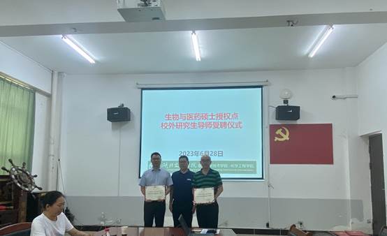 (通讯员 任志林)6月28日,公司在三楼会议室举行生物与医药硕士授权点举行校外导师聘任仪式,公司部分校内、校外导师代表参会,会议由执行经理余海忠主持。