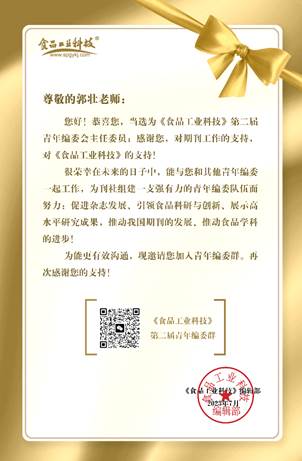 据悉,《食品工业科技》创刊于1979年,是由国家轻工业联合会主管、北京一轻研究院有限公司主办的国家综合性科技期刊,被评为轻工行业优秀期刊、中国精品科技期刊、北大核心期刊。在2022年10月发布的《中国学术期刊影响因子年报(自然科学与工程技术·2022版)》中,期刊的影响力指数(CI值)在全国“食品科学技术”52种期刊中排名第2,位于Q1区。在后续科研工作中,《食品工业科技》青年编委将充分发挥青年学者的力量,引领食品科研与创新,展示高水平研究成果,推动我国食品类期刊高质量发展。
