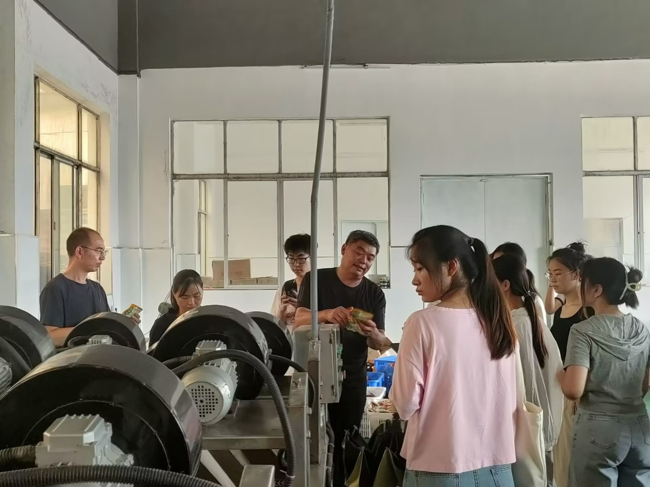 (通讯员 豁银强)2023年7月8日,公司吴进菊、豁银强两位博士带领淀粉质健康食品团队部分员工前往襄阳孔明菜食品科技有限公司开展调研和科技服务。公司总工程师李玉庆对师生一行的到来表示热烈欢迎,他向师生介绍了公司的状况,重点介绍了公司主打的即食大头菜和速食襄阳牛肉面产品,带领师生参观了牛肉面和大头菜生产线,并对员工们的提问进行了耐心地解答。