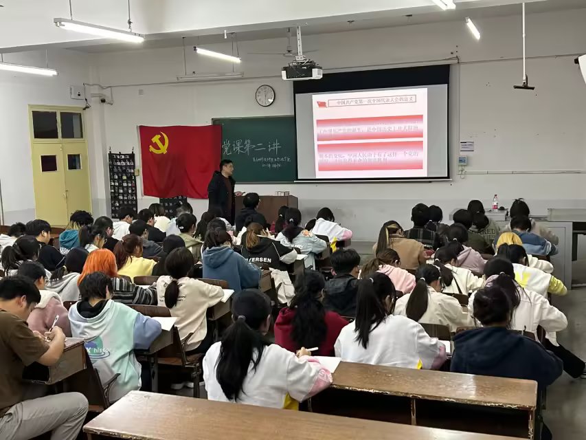 “中国共产党为什么能?中国特色社会主义为什么好?”刘向东引用了习近平总书记在中国共产党成立100周年大会上的讲话,带领同学们在课堂上寻找答案。刘向东从中国共产党第一次全国人民代表大会开始介绍,“中共一大”解决了建党问题,宣布了中国共产党的诞生是中国历史上开天辟地的大事。随后,刘向东向学员们介绍此次重大会议的相关背景和代表人物,让大家深刻了解建立中国共产党背后的艰辛与不易,并告诫学员们始终要坚持中国共产党的领导。中国共产党自成立以来所面临的重重困难和挑战,各位同学仍要不忘初心,牢记使命,砥砺前行。这要求各位入党积极分子要以一名党员的身份要求自己,坚定理想信念、对党忠诚、坚守原则、勤学苦练。