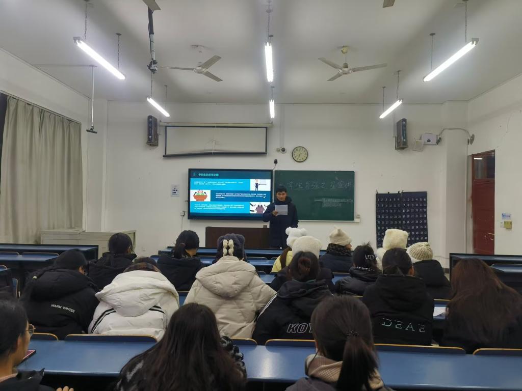 活动伊始,生教2331班班长胡宋敏做自我介绍,并向大家分享他的求学故事。他将过去学习和生活经历中总结出的经验、吸取的教训、探求出学习方法一一告诉给现场的同学们,并且指出“不要因为自己是中职生而感到沮丧,只要自信自强,你就一定会取得成功”。他还就如何培养自强精神提出了宝贵的建议。胡宋敏认为,老员工应该树立正确的人生观和价值观,积极投身于各种社会实践和志愿服务中,锻炼自己的意志和能力。同时,也要学会面对挫折和失败,不断调整自己的心态,以更加坚定的信念和更加饱满的热情迎接未来的挑战。他的故事激励了所有同学,宣讲活动在经久不息的掌声中圆满结束。