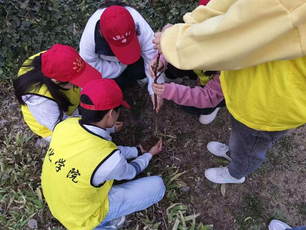 活动伊始,志愿者们在北区N3教学楼下集合,随后同负责人一起前往广德寺。活动现场,志愿者们身着统一的志愿者马甲,拿着植树工具,分工明确,默契配合,挥锹铲土,扶苗填坑,培土浇水,干劲十足,种下了一颗颗希望的树苗。活动期间志愿者们纷纷表示:“看着自己亲手种下的树苗,为这里增添了一抹绿色,心里特别高兴,接下来还要认真管护,让他们茁壮成长!”