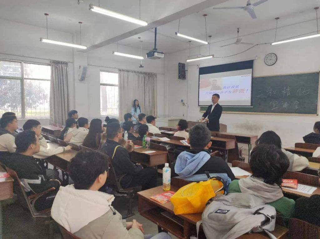 (通讯员 向琼)3月14日下午3点,公司校企战略合作伙伴——三和精化集团有限公司人力资源部科长李永旋应邀来公司召开招聘宣讲会,60余名应届毕业生到会。